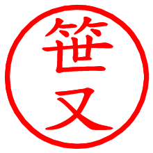 [朱肉の色]を選び、入力窓に“笹又”と入力して[生成]ボタンを押すと、印影が更新され、リンクから電子印鑑(デジタル印影)がダウンロードできます。 電子印鑑「笹又」の作り方文字表示が変なときや、文字バランスが悪いときは[字形切替]のチェックボックスでON/OFFを切り替え[生成]しなおしてください。 生成される画像は通常の印影「笹又.png」と、にじみを表現した少し太めの印影「笹又B.png」の背面透過PNG形式2種と、鮮明なPDF形式の印影「笹又.pdf」の計3種類です。 朱肉の微妙な色の違いを7色で表現しました。デフォルト(左端)は、JISが定めた朱肉の色のマンセル値(7.5R 5/14)をRGB値(217,66,54)に変換したものになっています。 「電子透かし」にチェックを入れて[生成]ボタンを押すと、タイムスタンプを電子透かしとして埋め込んだセキュアな電子印鑑が作れます。詳細は別ページの「タイムスタンプと電子透かし」でご覧ください。 笹又さんの日付印が作れます。「日付スタンプメーカー」は、社内向けの書類に利用されることの多い日付印(データ印)が無料で作れるWebアプリケーションです。中段に日付が入り、上段と下段は、ともに8文字まで文字が入ります。 ![]() 古代文字で落款印が作れます。「落款スタンプメーカー」で作品を引き立たせる落款印が作れます。
