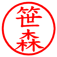 [朱肉の色]を選び、入力窓に“笹森”と入力して[生成]ボタンを押すと、印影が更新され、リンクから電子印鑑(デジタル印影)がダウンロードできます。 電子印鑑「笹森」の作り方文字表示が変なときや、文字バランスが悪いときは[字形切替]のチェックボックスでON/OFFを切り替え[生成]しなおしてください。 生成される画像は通常の印影「笹森.png」と、にじみを表現した少し太めの印影「笹森B.png」の背面透過PNG形式2種と、鮮明なPDF形式の印影「笹森.pdf」の計3種類です。 朱肉の微妙な色の違いを7色で表現しました。デフォルト(左端)は、JISが定めた朱肉の色のマンセル値(7.5R 5/14)をRGB値(217,66,54)に変換したものになっています。 「電子透かし」にチェックを入れて[生成]ボタンを押すと、タイムスタンプを透かしとして埋め込んだセキュアな電子印鑑が作れます。詳細は別ページの「電子透かしとタイムスタンプ」でご覧ください。 笹森さんの日付印が作れます。「日付スタンプメーカー」は、社内向けの書類に利用されることの多い日付印(データ印)が無料で作れるWebアプリケーションです。中段に日付が入り、上段と下段は、ともに8文字まで文字が入ります。 ![]() 古代文字で落款印が作れます。「落款スタンプメーカー」で作品を引き立たせる落款印が作れます。