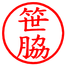 [朱肉の色]を選び、入力窓に“笹脇”と入力して[生成]ボタンを押すと、印影が更新され、リンクから電子印鑑(デジタル印影)がダウンロードできます。 電子印鑑「笹脇」の作り方文字表示が変なときや、文字バランスが悪いときは[字形切替]のチェックボックスでON/OFFを切り替え[生成]しなおしてください。 生成される画像は通常の印影「笹脇.png」と、にじみを表現した少し太めの印影「笹脇B.png」の背面透過PNG形式2種と、鮮明なPDF形式の印影「笹脇.pdf」の計3種類です。 朱肉の微妙な色の違いを7色で表現しました。デフォルト(左端)は、JISが定めた朱肉の色のマンセル値(7.5R 5/14)をRGB値(217,66,54)に変換したものになっています。 「電子透かし」にチェックを入れて[生成]ボタンを押すと、タイムスタンプを電子透かしとして埋め込んだセキュアな電子印鑑が作れます。詳細は別ページの「タイムスタンプと電子透かし」でご覧ください。 笹脇さんの日付印が作れます。「日付スタンプメーカー」は、社内向けの書類に利用されることの多い日付印(データ印)が無料で作れるWebアプリケーションです。中段に日付が入り、上段と下段は、ともに8文字まで文字が入ります。 ![]() 古代文字で落款印が作れます。「落款スタンプメーカー」で作品を引き立たせる落款印が作れます。