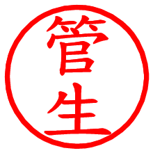 [朱肉の色]を選び、入力窓に“管生”と入力して[生成]ボタンを押すと、印影が更新され、リンクから電子印鑑(デジタル印影)がダウンロードできます。 電子印鑑「管生」の作り方文字表示が変なときや、文字バランスが悪いときは[字形切替]のチェックボックスでON/OFFを切り替え[生成]しなおしてください。 生成される画像は通常の印影「管生.png」と、にじみを表現した少し太めの印影「管生B.png」の背面透過PNG形式2種と、鮮明なPDF形式の印影「管生.pdf」の計3種類です。 朱肉の微妙な色の違いを7色で表現しました。デフォルト(左端)は、JISが定めた朱肉の色のマンセル値(7.5R 5/14)をRGB値(217,66,54)に変換したものになっています。 「電子透かし」にチェックを入れて[生成]ボタンを押すと、タイムスタンプを電子透かしとして埋め込んだセキュアな電子印鑑が作れます。詳細は別ページの「タイムスタンプと電子透かし」でご覧ください。 管生さんの日付印が作れます。「日付スタンプメーカー」は、社内向けの書類に利用されることの多い日付印(データ印)が無料で作れるWebアプリケーションです。中段に日付が入り、上段と下段は、ともに8文字まで文字が入ります。 ![]() 古代文字で落款印が作れます。「落款スタンプメーカー」で作品を引き立たせる落款印が作れます。