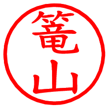 [朱肉の色]を選び、入力窓に“篭山”と入力して[生成]ボタンを押すと、印影が更新され、リンクから電子印鑑(デジタル印影)がダウンロードできます。 電子印鑑「篭山」の作り方文字表示が変なときや、文字バランスが悪いときは[字形切替]のチェックボックスでON/OFFを切り替え[生成]しなおしてください。 生成される画像は通常の印影「篭山.png」と、にじみを表現した少し太めの印影「篭山B.png」の背面透過PNG形式2種と、鮮明なPDF形式の印影「篭山.pdf」の計3種類です。 朱肉の微妙な色の違いを7色で表現しました。デフォルト(左端)は、JISが定めた朱肉の色のマンセル値(7.5R 5/14)をRGB値(217,66,54)に変換したものになっています。 「電子透かし」にチェックを入れて[生成]ボタンを押すと、タイムスタンプを電子透かしとして埋め込んだセキュアな電子印鑑が作れます。詳細は別ページの「タイムスタンプと電子透かし」でご覧ください。 篭山さんの日付印が作れます。「日付スタンプメーカー」は、社内向けの書類に利用されることの多い日付印(データ印)が無料で作れるWebアプリケーションです。中段に日付が入り、上段と下段は、ともに8文字まで文字が入ります。 ![]() 古代文字で落款印が作れます。「落款スタンプメーカー」で作品を引き立たせる落款印が作れます。