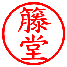 [朱肉の色]を選び、入力窓に“籐堂”と入力して[生成]ボタンを押すと、印影が更新され、リンクから電子印鑑(デジタル印影)がダウンロードできます。 電子印鑑「籐堂」の作り方文字表示が変なときや、文字バランスが悪いときは[字形切替]のチェックボックスでON/OFFを切り替え[生成]しなおしてください。 生成される画像は通常の印影「籐堂.png」と、にじみを表現した少し太めの印影「籐堂B.png」の背面透過PNG形式2種と、鮮明なPDF形式の印影「籐堂.pdf」の計3種類です。 朱肉の微妙な色の違いを7色で表現しました。デフォルト(左端)は、JISが定めた朱肉の色のマンセル値(7.5R 5/14)をRGB値(217,66,54)に変換したものになっています。 「電子透かし」にチェックを入れて[生成]ボタンを押すと、タイムスタンプを電子透かしとして埋め込んだセキュアな電子印鑑が作れます。詳細は別ページの「タイムスタンプと電子透かし」でご覧ください。 籐堂さんの日付印が作れます。「日付スタンプメーカー」は、社内向けの書類に利用されることの多い日付印(データ印)が無料で作れるWebアプリケーションです。中段に日付が入り、上段と下段は、ともに8文字まで文字が入ります。 ![]() 古代文字で落款印が作れます。「落款スタンプメーカー」で作品を引き立たせる落款印が作れます。