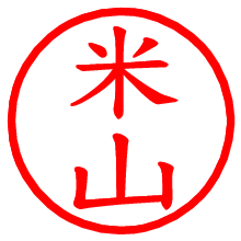 [朱肉の色]を選び、入力窓に“米山”と入力して[生成]ボタンを押すと、印影が更新され、リンクから電子印鑑(デジタル印影)がダウンロードできます。 電子印鑑「米山」の作り方文字表示が変なときや、文字バランスが悪いときは[字形切替]のチェックボックスでON/OFFを切り替え[生成]しなおしてください。 生成される画像は通常の印影「米山.png」と、にじみを表現した少し太めの印影「米山B.png」の背面透過PNG形式2種と、鮮明なPDF形式の印影「米山.pdf」の計3種類です。 朱肉の微妙な色の違いを7色で表現しました。デフォルト(左端)は、JISが定めた朱肉の色のマンセル値(7.5R 5/14)をRGB値(217,66,54)に変換したものになっています。 「電子透かし」にチェックを入れて[生成]ボタンを押すと、タイムスタンプを透かしとして埋め込んだセキュアな電子印鑑が作れます。詳細は別ページの「電子透かしとタイムスタンプ」でご覧ください。 米山さんの日付印が作れます。「日付スタンプメーカー」は、社内向けの書類に利用されることの多い日付印(データ印)が無料で作れるWebアプリケーションです。中段に日付が入り、上段と下段は、ともに8文字まで文字が入ります。 ![]() 古代文字で落款印が作れます。「落款スタンプメーカー」で作品を引き立たせる落款印が作れます。