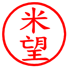 [朱肉の色]を選び、入力窓に“米望”と入力して[生成]ボタンを押すと、印影が更新され、リンクから電子印鑑(デジタル印影)がダウンロードできます。 電子印鑑「米望」の作り方文字表示が変なときや、文字バランスが悪いときは[字形切替]のチェックボックスでON/OFFを切り替え[生成]しなおしてください。 生成される画像は通常の印影「米望.png」と、にじみを表現した少し太めの印影「米望B.png」の背面透過PNG形式2種と、鮮明なPDF形式の印影「米望.pdf」の計3種類です。 朱肉の微妙な色の違いを7色で表現しました。デフォルト(左端)は、JISが定めた朱肉の色のマンセル値(7.5R 5/14)をRGB値(217,66,54)に変換したものになっています。 「電子透かし」にチェックを入れて[生成]ボタンを押すと、タイムスタンプを電子透かしとして埋め込んだセキュアな電子印鑑が作れます。詳細は別ページの「タイムスタンプと電子透かし」でご覧ください。 米望さんの日付印が作れます。「日付スタンプメーカー」は、社内向けの書類に利用されることの多い日付印(データ印)が無料で作れるWebアプリケーションです。中段に日付が入り、上段と下段は、ともに8文字まで文字が入ります。 ![]() 古代文字で落款印が作れます。「落款スタンプメーカー」で作品を引き立たせる落款印が作れます。