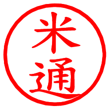 [朱肉の色]を選び、入力窓に“米通”と入力して[生成]ボタンを押すと、印影が更新され、リンクから電子印鑑(デジタル印影)がダウンロードできます。 電子印鑑「米通」の作り方文字表示が変なときや、文字バランスが悪いときは[字形切替]のチェックボックスでON/OFFを切り替え[生成]しなおしてください。 生成される画像は通常の印影「米通.png」と、にじみを表現した少し太めの印影「米通B.png」の背面透過PNG形式2種と、鮮明なPDF形式の印影「米通.pdf」の計3種類です。 朱肉の微妙な色の違いを7色で表現しました。デフォルト(左端)は、JISが定めた朱肉の色のマンセル値(7.5R 5/14)をRGB値(217,66,54)に変換したものになっています。 「電子透かし」にチェックを入れて[生成]ボタンを押すと、タイムスタンプを電子透かしとして埋め込んだセキュアな電子印鑑が作れます。詳細は別ページの「タイムスタンプと電子透かし」でご覧ください。 米通さんの日付印が作れます。「日付スタンプメーカー」は、社内向けの書類に利用されることの多い日付印(データ印)が無料で作れるWebアプリケーションです。中段に日付が入り、上段と下段は、ともに8文字まで文字が入ります。 ![]() 古代文字で落款印が作れます。「落款スタンプメーカー」で作品を引き立たせる落款印が作れます。