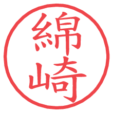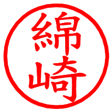 [朱肉の色]を選び、入力窓に“綿崎”と入力して[生成]ボタンを押すと、印影が更新され、リンクから電子印鑑(デジタル印影)がダウンロードできます。 電子印鑑「綿崎」の作り方文字表示が変なときや、文字バランスが悪いときは[字形切替]のチェックボックスでON/OFFを切り替え[生成]しなおしてください。 生成される画像は通常の印影「綿崎.png」と、にじみを表現した少し太めの印影「綿崎B.png」の背面透過PNG形式2種と、鮮明なPDF形式の印影「綿崎.pdf」の計3種類です。 朱肉の微妙な色の違いを7色で表現しました。デフォルト(左端)は、JISが定めた朱肉の色のマンセル値(7.5R 5/14)をRGB値(217,66,54)に変換したものになっています。 「電子透かし」にチェックを入れて[生成]ボタンを押すと、タイムスタンプを電子透かしとして埋め込んだセキュアな電子印鑑が作れます。詳細は別ページの「タイムスタンプと電子透かし」でご覧ください。 綿崎さんの日付印が作れます。「日付スタンプメーカー」は、社内向けの書類に利用されることの多い日付印(データ印)が無料で作れるWebアプリケーションです。中段に日付が入り、上段と下段は、ともに8文字まで文字が入ります。 ![]() 古代文字で落款印が作れます。「落款スタンプメーカー」で作品を引き立たせる落款印が作れます。
