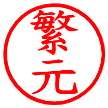 [朱肉の色]を選び、入力窓に“繁元”と入力して[生成]ボタンを押すと、印影が更新され、リンクから電子印鑑(デジタル印影)がダウンロードできます。 電子印鑑「繁元」の作り方文字表示が変なときや、文字バランスが悪いときは[字形切替]のチェックボックスでON/OFFを切り替え[生成]しなおしてください。 生成される画像は通常の印影「繁元.png」と、にじみを表現した少し太めの印影「繁元B.png」の背面透過PNG形式2種と、鮮明なPDF形式の印影「繁元.pdf」の計3種類です。 朱肉の微妙な色の違いを7色で表現しました。デフォルト(左端)は、JISが定めた朱肉の色のマンセル値(7.5R 5/14)をRGB値(217,66,54)に変換したものになっています。 「電子透かし」にチェックを入れて[生成]ボタンを押すと、タイムスタンプを電子透かしとして埋め込んだセキュアな電子印鑑が作れます。詳細は別ページの「タイムスタンプと電子透かし」でご覧ください。 繁元さんの日付印が作れます。「日付スタンプメーカー」は、社内向けの書類に利用されることの多い日付印(データ印)が無料で作れるWebアプリケーションです。中段に日付が入り、上段と下段は、ともに8文字まで文字が入ります。 ![]() 古代文字で落款印が作れます。「落款スタンプメーカー」で作品を引き立たせる落款印が作れます。