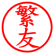 [朱肉の色]を選び、入力窓に“繁友”と入力して[生成]ボタンを押すと、印影が更新され、リンクから電子印鑑(デジタル印影)がダウンロードできます。 電子印鑑「繁友」の作り方文字表示が変なときや、文字バランスが悪いときは[字形切替]のチェックボックスでON/OFFを切り替え[生成]しなおしてください。 生成される画像は通常の印影「繁友.png」と、にじみを表現した少し太めの印影「繁友B.png」の背面透過PNG形式2種と、鮮明なPDF形式の印影「繁友.pdf」の計3種類です。 朱肉の微妙な色の違いを7色で表現しました。デフォルト(左端)は、JISが定めた朱肉の色のマンセル値(7.5R 5/14)をRGB値(217,66,54)に変換したものになっています。 「電子透かし」にチェックを入れて[生成]ボタンを押すと、タイムスタンプを電子透かしとして埋め込んだセキュアな電子印鑑が作れます。詳細は別ページの「タイムスタンプと電子透かし」でご覧ください。 繁友さんの日付印が作れます。「日付スタンプメーカー」は、社内向けの書類に利用されることの多い日付印(データ印)が無料で作れるWebアプリケーションです。中段に日付が入り、上段と下段は、ともに8文字まで文字が入ります。 ![]() 古代文字で落款印が作れます。「落款スタンプメーカー」で作品を引き立たせる落款印が作れます。
