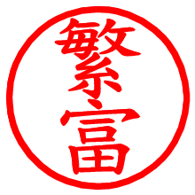 [朱肉の色]を選び、入力窓に“繁富”と入力して[生成]ボタンを押すと、印影が更新され、リンクから電子印鑑(デジタル印影)がダウンロードできます。 電子印鑑「繁富」の作り方文字表示が変なときや、文字バランスが悪いときは[字形切替]のチェックボックスでON/OFFを切り替え[生成]しなおしてください。 生成される画像は通常の印影「繁富.png」と、にじみを表現した少し太めの印影「繁富B.png」の背面透過PNG形式2種と、鮮明なPDF形式の印影「繁富.pdf」の計3種類です。 朱肉の微妙な色の違いを7色で表現しました。デフォルト(左端)は、JISが定めた朱肉の色のマンセル値(7.5R 5/14)をRGB値(217,66,54)に変換したものになっています。 「電子透かし」にチェックを入れて[生成]ボタンを押すと、タイムスタンプを透かしとして埋め込んだセキュアな電子印鑑が作れます。詳細は別ページの「電子透かしとタイムスタンプ」でご覧ください。 繁富さんの日付印が作れます。「日付スタンプメーカー」は、社内向けの書類に利用されることの多い日付印(データ印)が無料で作れるWebアプリケーションです。中段に日付が入り、上段と下段は、ともに8文字まで文字が入ります。 ![]() 古代文字で落款印が作れます。「落款スタンプメーカー」で作品を引き立たせる落款印が作れます。