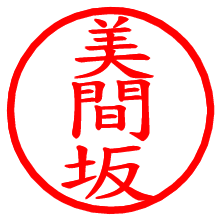 [朱肉の色]を選び、入力窓に“美間坂”と入力して[生成]ボタンを押すと、印影が更新され、リンクから電子印鑑(デジタル印影)がダウンロードできます。 電子印鑑「美間坂」の作り方文字表示が変なときや、文字バランスが悪いときは[字形切替]のチェックボックスでON/OFFを切り替え[生成]しなおしてください。 生成される画像は通常の印影「美間坂.png」と、にじみを表現した少し太めの印影「美間坂B.png」の背面透過PNG形式2種と、鮮明なPDF形式の印影「美間坂.pdf」の計3種類です。 朱肉の微妙な色の違いを7色で表現しました。デフォルト(左端)は、JISが定めた朱肉の色のマンセル値(7.5R 5/14)をRGB値(217,66,54)に変換したものになっています。 「電子透かし」にチェックを入れて[生成]ボタンを押すと、タイムスタンプを電子透かしとして埋め込んだセキュアな電子印鑑が作れます。詳細は別ページの「タイムスタンプと電子透かし」でご覧ください。 美間坂さんの日付印が作れます。「日付スタンプメーカー」は、社内向けの書類に利用されることの多い日付印(データ印)が無料で作れるWebアプリケーションです。中段に日付が入り、上段と下段は、ともに8文字まで文字が入ります。 ![]() 古代文字で落款印が作れます。「落款スタンプメーカー」で作品を引き立たせる落款印が作れます。