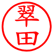 [朱肉の色]を選び、入力窓に“翠田”と入力して[生成]ボタンを押すと、印影が更新され、リンクから電子印鑑(デジタル印影)がダウンロードできます。 電子印鑑「翠田」の作り方文字表示が変なときや、文字バランスが悪いときは[字形切替]のチェックボックスでON/OFFを切り替え[生成]しなおしてください。 生成される画像は通常の印影「翠田.png」と、にじみを表現した少し太めの印影「翠田B.png」の背面透過PNG形式2種と、鮮明なPDF形式の印影「翠田.pdf」の計3種類です。 朱肉の微妙な色の違いを7色で表現しました。デフォルト(左端)は、JISが定めた朱肉の色のマンセル値(7.5R 5/14)をRGB値(217,66,54)に変換したものになっています。 「電子透かし」にチェックを入れて[生成]ボタンを押すと、タイムスタンプを電子透かしとして埋め込んだセキュアな電子印鑑が作れます。詳細は別ページの「タイムスタンプと電子透かし」でご覧ください。 翠田さんの日付印が作れます。「日付スタンプメーカー」は、社内向けの書類に利用されることの多い日付印(データ印)が無料で作れるWebアプリケーションです。中段に日付が入り、上段と下段は、ともに8文字まで文字が入ります。 ![]() 古代文字で落款印が作れます。「落款スタンプメーカー」で作品を引き立たせる落款印が作れます。