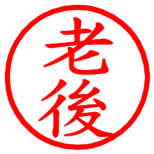 [朱肉の色]を選び、入力窓に“老後”と入力して[生成]ボタンを押すと、印影が更新され、リンクから電子印鑑(デジタル印影)がダウンロードできます。 電子印鑑「老後」の作り方文字表示が変なときや、文字バランスが悪いときは[字形切替]のチェックボックスでON/OFFを切り替え[生成]しなおしてください。 生成される画像は通常の印影「老後.png」と、にじみを表現した少し太めの印影「老後B.png」の背面透過PNG形式2種と、鮮明なPDF形式の印影「老後.pdf」の計3種類です。 朱肉の微妙な色の違いを7色で表現しました。デフォルト(左端)は、JISが定めた朱肉の色のマンセル値(7.5R 5/14)をRGB値(217,66,54)に変換したものになっています。 「電子透かし」にチェックを入れて[生成]ボタンを押すと、タイムスタンプを透かしとして埋め込んだセキュアな電子印鑑が作れます。詳細は別ページの「電子透かしとタイムスタンプ」でご覧ください。  老後さんの日付印が作れます。「日付スタンプメーカー」は、社内向けの書類に利用されることの多い日付印(データ印)が無料で作れるWebアプリケーションです。 中段に日付が入り、上段と下段は、ともに8文字まで文字が入ります。   古代文字で落款印が作れます。「落款スタンプメーカー」で作品を引き立たせる落款印が作れます。  なりきり書道 「落款スタンプメーカー」で作成した落款印の全体的な配置バランスの確認にご利用いただけます。デザインのワンポイントやラインスタンプ等にもお使いください。  遊び心ある老後さんの角印はいかが? 絵文字が使えてLINEスタンプや年賀状にも使える消しゴムはんこ風の電子印鑑が作れます。  画像スタンプメーカーは、猫派の方はもちろん。犬派の方にもおすすめしたいペットなどのお気に入りの画像とかわいいタッチの文字が入るほっこりしたスタンプです。 マイスタンプメーカーとは法的な電子印鑑にはあたりませんので三文判的な位置付けでご利用ください。 | ||
