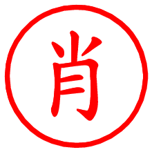 [朱肉の色]を選び、入力窓に“肖”と入力して[生成]ボタンを押すと、印影が更新され、リンクから電子印鑑(デジタル印影)がダウンロードできます。 電子印鑑「肖」の作り方文字表示が変なときや、文字バランスが悪いときは[字形切替]のチェックボックスでON/OFFを切り替え[生成]しなおしてください。 生成される画像は通常の印影「肖.png」と、にじみを表現した少し太めの印影「肖B.png」の背面透過PNG形式2種と、鮮明なPDF形式の印影「肖.pdf」の計3種類です。 朱肉の微妙な色の違いを7色で表現しました。デフォルト(左端)は、JISが定めた朱肉の色のマンセル値(7.5R 5/14)をRGB値(217,66,54)に変換したものになっています。 「電子透かし」にチェックを入れて[生成]ボタンを押すと、タイムスタンプを電子透かしとして埋め込んだセキュアな電子印鑑が作れます。詳細は別ページの「タイムスタンプと電子透かし」でご覧ください。 肖さんの日付印が作れます。「日付スタンプメーカー」は、社内向けの書類に利用されることの多い日付印(データ印)が無料で作れるWebアプリケーションです。中段に日付が入り、上段と下段は、ともに8文字まで文字が入ります。 ![]() 古代文字で落款印が作れます。「落款スタンプメーカー」で作品を引き立たせる落款印が作れます。