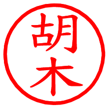 [朱肉の色]を選び、入力窓に“胡木”と入力して[生成]ボタンを押すと、印影が更新され、リンクから電子印鑑(デジタル印影)がダウンロードできます。 電子印鑑「胡木」の作り方文字表示が変なときや、文字バランスが悪いときは[字形切替]のチェックボックスでON/OFFを切り替え[生成]しなおしてください。 生成される画像は通常の印影「胡木.png」と、にじみを表現した少し太めの印影「胡木B.png」の背面透過PNG形式2種と、鮮明なPDF形式の印影「胡木.pdf」の計3種類です。 朱肉の微妙な色の違いを7色で表現しました。デフォルト(左端)は、JISが定めた朱肉の色のマンセル値(7.5R 5/14)をRGB値(217,66,54)に変換したものになっています。 「電子透かし」にチェックを入れて[生成]ボタンを押すと、タイムスタンプを電子透かしとして埋め込んだセキュアな電子印鑑が作れます。詳細は別ページの「タイムスタンプと電子透かし」でご覧ください。 胡木さんの日付印が作れます。「日付スタンプメーカー」は、社内向けの書類に利用されることの多い日付印(データ印)が無料で作れるWebアプリケーションです。中段に日付が入り、上段と下段は、ともに8文字まで文字が入ります。 ![]() 古代文字で落款印が作れます。「落款スタンプメーカー」で作品を引き立たせる落款印が作れます。