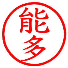[朱肉の色]を選び、入力窓に“能多”と入力して[生成]ボタンを押すと、印影が更新され、リンクから電子印鑑(デジタル印影)がダウンロードできます。 電子印鑑「能多」の作り方文字表示が変なときや、文字バランスが悪いときは[字形切替]のチェックボックスでON/OFFを切り替え[生成]しなおしてください。 生成される画像は通常の印影「能多.png」と、にじみを表現した少し太めの印影「能多B.png」の背面透過PNG形式2種と、鮮明なPDF形式の印影「能多.pdf」の計3種類です。 朱肉の微妙な色の違いを7色で表現しました。デフォルト(左端)は、JISが定めた朱肉の色のマンセル値(7.5R 5/14)をRGB値(217,66,54)に変換したものになっています。 「電子透かし」にチェックを入れて[生成]ボタンを押すと、タイムスタンプを電子透かしとして埋め込んだセキュアな電子印鑑が作れます。詳細は別ページの「タイムスタンプと電子透かし」でご覧ください。 能多さんの日付印が作れます。「日付スタンプメーカー」は、社内向けの書類に利用されることの多い日付印(データ印)が無料で作れるWebアプリケーションです。中段に日付が入り、上段と下段は、ともに8文字まで文字が入ります。 ![]() 古代文字で落款印が作れます。「落款スタンプメーカー」で作品を引き立たせる落款印が作れます。