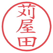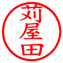 [朱肉の色]を選び、入力窓に“苅屋田”と入力して[生成]ボタンを押すと、印影が更新され、リンクから電子印鑑(デジタル印影)がダウンロードできます。 電子印鑑「苅屋田」の作り方文字表示が変なときや、文字バランスが悪いときは[字形切替]のチェックボックスでON/OFFを切り替え[生成]しなおしてください。 生成される画像は通常の印影「苅屋田.png」と、にじみを表現した少し太めの印影「苅屋田B.png」の背面透過PNG形式2種と、鮮明なPDF形式の印影「苅屋田.pdf」の計3種類です。 朱肉の微妙な色の違いを7色で表現しました。デフォルト(左端)は、JISが定めた朱肉の色のマンセル値(7.5R 5/14)をRGB値(217,66,54)に変換したものになっています。 「電子透かし」にチェックを入れて[生成]ボタンを押すと、タイムスタンプを電子透かしとして埋め込んだセキュアな電子印鑑が作れます。詳細は別ページの「タイムスタンプと電子透かし」でご覧ください。 苅屋田さんの日付印が作れます。「日付スタンプメーカー」は、社内向けの書類に利用されることの多い日付印(データ印)が無料で作れるWebアプリケーションです。中段に日付が入り、上段と下段は、ともに8文字まで文字が入ります。 ![]() 古代文字で落款印が作れます。「落款スタンプメーカー」で作品を引き立たせる落款印が作れます。