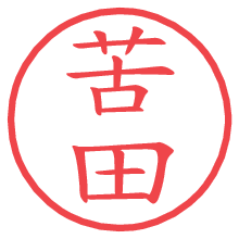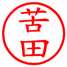[朱肉の色]を選び、入力窓に“苦田”と入力して[生成]ボタンを押すと、印影が更新され、リンクから電子印鑑(デジタル印影)がダウンロードできます。 電子印鑑「苦田」の作り方文字表示が変なときや、文字バランスが悪いときは[字形切替]のチェックボックスでON/OFFを切り替え[生成]しなおしてください。 生成される画像は通常の印影「苦田.png」と、にじみを表現した少し太めの印影「苦田B.png」の背面透過PNG形式2種と、鮮明なPDF形式の印影「苦田.pdf」の計3種類です。 朱肉の微妙な色の違いを7色で表現しました。デフォルト(左端)は、JISが定めた朱肉の色のマンセル値(7.5R 5/14)をRGB値(217,66,54)に変換したものになっています。 「電子透かし」にチェックを入れて[生成]ボタンを押すと、タイムスタンプを電子透かしとして埋め込んだセキュアな電子印鑑が作れます。詳細は別ページの「タイムスタンプと電子透かし」でご覧ください。 苦田さんの日付印が作れます。「日付スタンプメーカー」は、社内向けの書類に利用されることの多い日付印(データ印)が無料で作れるWebアプリケーションです。中段に日付が入り、上段と下段は、ともに8文字まで文字が入ります。 ![]() 古代文字で落款印が作れます。「落款スタンプメーカー」で作品を引き立たせる落款印が作れます。