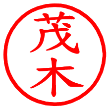 [朱肉の色]を選び、入力窓に“茂木”と入力して[生成]ボタンを押すと、印影が更新され、リンクから電子印鑑(デジタル印影)がダウンロードできます。 電子印鑑「茂木」の作り方文字表示が変なときや、文字バランスが悪いときは[字形切替]のチェックボックスでON/OFFを切り替え[生成]しなおしてください。 生成される画像は通常の印影「茂木.png」と、にじみを表現した少し太めの印影「茂木B.png」の背面透過PNG形式2種と、鮮明なPDF形式の印影「茂木.pdf」の計3種類です。 朱肉の微妙な色の違いを7色で表現しました。デフォルト(左端)は、JISが定めた朱肉の色のマンセル値(7.5R 5/14)をRGB値(217,66,54)に変換したものになっています。 「電子透かし」にチェックを入れて[生成]ボタンを押すと、タイムスタンプを透かしとして埋め込んだセキュアな電子印鑑が作れます。詳細は別ページの「電子透かしとタイムスタンプ」でご覧ください。 茂木さんの日付印が作れます。「日付スタンプメーカー」は、社内向けの書類に利用されることの多い日付印(データ印)が無料で作れるWebアプリケーションです。中段に日付が入り、上段と下段は、ともに8文字まで文字が入ります。 ![]() 古代文字で落款印が作れます。「落款スタンプメーカー」で作品を引き立たせる落款印が作れます。
