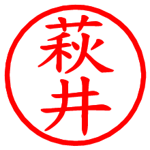 [朱肉の色]を選び、入力窓に“萩井”と入力して[生成]ボタンを押すと、印影が更新され、リンクから電子印鑑(デジタル印影)がダウンロードできます。 電子印鑑「萩井」の作り方文字表示が変なときや、文字バランスが悪いときは[字形切替]のチェックボックスでON/OFFを切り替え[生成]しなおしてください。 生成される画像は通常の印影「萩井.png」と、にじみを表現した少し太めの印影「萩井B.png」の背面透過PNG形式2種と、鮮明なPDF形式の印影「萩井.pdf」の計3種類です。 朱肉の微妙な色の違いを7色で表現しました。デフォルト(左端)は、JISが定めた朱肉の色のマンセル値(7.5R 5/14)をRGB値(217,66,54)に変換したものになっています。 「電子透かし」にチェックを入れて[生成]ボタンを押すと、タイムスタンプを電子透かしとして埋め込んだセキュアな電子印鑑が作れます。詳細は別ページの「タイムスタンプと電子透かし」でご覧ください。 萩井さんの日付印が作れます。「日付スタンプメーカー」は、社内向けの書類に利用されることの多い日付印(データ印)が無料で作れるWebアプリケーションです。中段に日付が入り、上段と下段は、ともに8文字まで文字が入ります。 ![]() 古代文字で落款印が作れます。「落款スタンプメーカー」で作品を引き立たせる落款印が作れます。