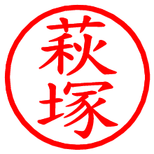 [朱肉の色]を選び、入力窓に“萩塚”と入力して[生成]ボタンを押すと、印影が更新され、リンクから電子印鑑(デジタル印影)がダウンロードできます。 電子印鑑「萩塚」の作り方文字表示が変なときや、文字バランスが悪いときは[字形切替]のチェックボックスでON/OFFを切り替え[生成]しなおしてください。 生成される画像は通常の印影「萩塚.png」と、にじみを表現した少し太めの印影「萩塚B.png」の背面透過PNG形式2種と、鮮明なPDF形式の印影「萩塚.pdf」の計3種類です。 朱肉の微妙な色の違いを7色で表現しました。デフォルト(左端)は、JISが定めた朱肉の色のマンセル値(7.5R 5/14)をRGB値(217,66,54)に変換したものになっています。 「電子透かし」にチェックを入れて[生成]ボタンを押すと、タイムスタンプを電子透かしとして埋め込んだセキュアな電子印鑑が作れます。詳細は別ページの「タイムスタンプと電子透かし」でご覧ください。 萩塚さんの日付印が作れます。「日付スタンプメーカー」は、社内向けの書類に利用されることの多い日付印(データ印)が無料で作れるWebアプリケーションです。中段に日付が入り、上段と下段は、ともに8文字まで文字が入ります。 ![]() 古代文字で落款印が作れます。「落款スタンプメーカー」で作品を引き立たせる落款印が作れます。