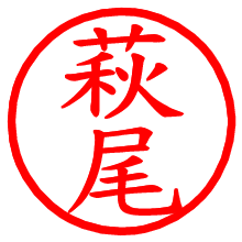 [朱肉の色]を選び、入力窓に“萩尾”と入力して[生成]ボタンを押すと、印影が更新され、リンクから電子印鑑(デジタル印影)がダウンロードできます。 電子印鑑「萩尾」の作り方文字表示が変なときや、文字バランスが悪いときは[字形切替]のチェックボックスでON/OFFを切り替え[生成]しなおしてください。 生成される画像は通常の印影「萩尾.png」と、にじみを表現した少し太めの印影「萩尾B.png」の背面透過PNG形式2種と、鮮明なPDF形式の印影「萩尾.pdf」の計3種類です。 朱肉の微妙な色の違いを7色で表現しました。デフォルト(左端)は、JISが定めた朱肉の色のマンセル値(7.5R 5/14)をRGB値(217,66,54)に変換したものになっています。 「電子透かし」にチェックを入れて[生成]ボタンを押すと、タイムスタンプを透かしとして埋め込んだセキュアな電子印鑑が作れます。詳細は別ページの「電子透かしとタイムスタンプ」でご覧ください。 萩尾さんの日付印が作れます。「日付スタンプメーカー」は、社内向けの書類に利用されることの多い日付印(データ印)が無料で作れるWebアプリケーションです。中段に日付が入り、上段と下段は、ともに8文字まで文字が入ります。 ![]() 古代文字で落款印が作れます。「落款スタンプメーカー」で作品を引き立たせる落款印が作れます。