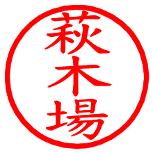 [朱肉の色]を選び、入力窓に“萩木場”と入力して[生成]ボタンを押すと、印影が更新され、リンクから電子印鑑(デジタル印影)がダウンロードできます。 電子印鑑「萩木場」の作り方文字表示が変なときや、文字バランスが悪いときは[字形切替]のチェックボックスでON/OFFを切り替え[生成]しなおしてください。 生成される画像は通常の印影「萩木場.png」と、にじみを表現した少し太めの印影「萩木場B.png」の背面透過PNG形式2種と、鮮明なPDF形式の印影「萩木場.pdf」の計3種類です。 朱肉の微妙な色の違いを7色で表現しました。デフォルト(左端)は、JISが定めた朱肉の色のマンセル値(7.5R 5/14)をRGB値(217,66,54)に変換したものになっています。 「電子透かし」にチェックを入れて[生成]ボタンを押すと、タイムスタンプを電子透かしとして埋め込んだセキュアな電子印鑑が作れます。詳細は別ページの「タイムスタンプと電子透かし」でご覧ください。 萩木場さんの日付印が作れます。「日付スタンプメーカー」は、社内向けの書類に利用されることの多い日付印(データ印)が無料で作れるWebアプリケーションです。中段に日付が入り、上段と下段は、ともに8文字まで文字が入ります。 ![]() 古代文字で落款印が作れます。「落款スタンプメーカー」で作品を引き立たせる落款印が作れます。