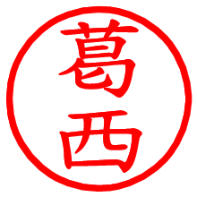 [朱肉の色]を選び、入力窓に“葛西”と入力して[生成]ボタンを押すと、印影が更新され、リンクから電子印鑑(デジタル印影)がダウンロードできます。 電子印鑑「葛西」の作り方文字表示が変なときや、文字バランスが悪いときは[字形切替]のチェックボックスでON/OFFを切り替え[生成]しなおしてください。 生成される画像は通常の印影「葛西.png」と、にじみを表現した少し太めの印影「葛西B.png」の背面透過PNG形式2種と、鮮明なPDF形式の印影「葛西.pdf」の計3種類です。 朱肉の微妙な色の違いを7色で表現しました。デフォルト(左端)は、JISが定めた朱肉の色のマンセル値(7.5R 5/14)をRGB値(217,66,54)に変換したものになっています。 「電子透かし」にチェックを入れて[生成]ボタンを押すと、タイムスタンプを透かしとして埋め込んだセキュアな電子印鑑が作れます。詳細は別ページの「電子透かしとタイムスタンプ」でご覧ください。 葛西さんの日付印が作れます。「日付スタンプメーカー」は、社内向けの書類に利用されることの多い日付印(データ印)が無料で作れるWebアプリケーションです。中段に日付が入り、上段と下段は、ともに8文字まで文字が入ります。 ![]() 古代文字で落款印が作れます。「落款スタンプメーカー」で作品を引き立たせる落款印が作れます。