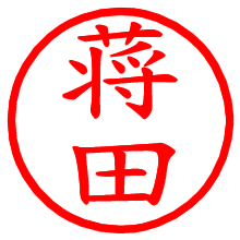 [朱肉の色]を選び、入力窓に“蒋田”と入力して[生成]ボタンを押すと、印影が更新され、リンクから電子印鑑(デジタル印影)がダウンロードできます。 電子印鑑「蒋田」の作り方文字表示が変なときや、文字バランスが悪いときは[字形切替]のチェックボックスでON/OFFを切り替え[生成]しなおしてください。 生成される画像は通常の印影「蒋田.png」と、にじみを表現した少し太めの印影「蒋田B.png」の背面透過PNG形式2種と、鮮明なPDF形式の印影「蒋田.pdf」の計3種類です。 朱肉の微妙な色の違いを7色で表現しました。デフォルト(左端)は、JISが定めた朱肉の色のマンセル値(7.5R 5/14)をRGB値(217,66,54)に変換したものになっています。 「電子透かし」にチェックを入れて[生成]ボタンを押すと、タイムスタンプを電子透かしとして埋め込んだセキュアな電子印鑑が作れます。詳細は別ページの「タイムスタンプと電子透かし」でご覧ください。 蒋田さんの日付印が作れます。「日付スタンプメーカー」は、社内向けの書類に利用されることの多い日付印(データ印)が無料で作れるWebアプリケーションです。中段に日付が入り、上段と下段は、ともに8文字まで文字が入ります。 ![]() 古代文字で落款印が作れます。「落款スタンプメーカー」で作品を引き立たせる落款印が作れます。