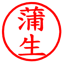 [朱肉の色]を選び、入力窓に“蒲生”と入力して[生成]ボタンを押すと、印影が更新され、リンクから電子印鑑(デジタル印影)がダウンロードできます。 電子印鑑「蒲生」の作り方文字表示が変なときや、文字バランスが悪いときは[字形切替]のチェックボックスでON/OFFを切り替え[生成]しなおしてください。 生成される画像は通常の印影「蒲生.png」と、にじみを表現した少し太めの印影「蒲生B.png」の背面透過PNG形式2種と、鮮明なPDF形式の印影「蒲生.pdf」の計3種類です。 朱肉の微妙な色の違いを7色で表現しました。デフォルト(左端)は、JISが定めた朱肉の色のマンセル値(7.5R 5/14)をRGB値(217,66,54)に変換したものになっています。 「電子透かし」にチェックを入れて[生成]ボタンを押すと、タイムスタンプを透かしとして埋め込んだセキュアな電子印鑑が作れます。詳細は別ページの「電子透かしとタイムスタンプ」でご覧ください。 蒲生さんの日付印が作れます。「日付スタンプメーカー」は、社内向けの書類に利用されることの多い日付印(データ印)が無料で作れるWebアプリケーションです。中段に日付が入り、上段と下段は、ともに8文字まで文字が入ります。 ![]() 古代文字で落款印が作れます。「落款スタンプメーカー」で作品を引き立たせる落款印が作れます。
