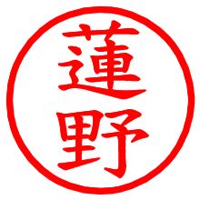 [朱肉の色]を選び、入力窓に“蓮野”と入力して[生成]ボタンを押すと、印影が更新され、リンクから電子印鑑(デジタル印影)がダウンロードできます。 電子印鑑「蓮野」の作り方文字表示が変なときや、文字バランスが悪いときは[字形切替]のチェックボックスでON/OFFを切り替え[生成]しなおしてください。 生成される画像は通常の印影「蓮野.png」と、にじみを表現した少し太めの印影「蓮野B.png」の背面透過PNG形式2種と、鮮明なPDF形式の印影「蓮野.pdf」の計3種類です。 朱肉の微妙な色の違いを7色で表現しました。デフォルト(左端)は、JISが定めた朱肉の色のマンセル値(7.5R 5/14)をRGB値(217,66,54)に変換したものになっています。 「電子透かし」にチェックを入れて[生成]ボタンを押すと、タイムスタンプを電子透かしとして埋め込んだセキュアな電子印鑑が作れます。詳細は別ページの「タイムスタンプと電子透かし」でご覧ください。 蓮野さんの日付印が作れます。「日付スタンプメーカー」は、社内向けの書類に利用されることの多い日付印(データ印)が無料で作れるWebアプリケーションです。中段に日付が入り、上段と下段は、ともに8文字まで文字が入ります。 ![]() 古代文字で落款印が作れます。「落款スタンプメーカー」で作品を引き立たせる落款印が作れます。