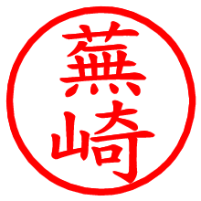 [朱肉の色]を選び、入力窓に“蕪崎”と入力して[生成]ボタンを押すと、印影が更新され、リンクから電子印鑑(デジタル印影)がダウンロードできます。 電子印鑑「蕪崎」の作り方文字表示が変なときや、文字バランスが悪いときは[字形切替]のチェックボックスでON/OFFを切り替え[生成]しなおしてください。 生成される画像は通常の印影「蕪崎.png」と、にじみを表現した少し太めの印影「蕪崎B.png」の背面透過PNG形式2種と、鮮明なPDF形式の印影「蕪崎.pdf」の計3種類です。 朱肉の微妙な色の違いを7色で表現しました。デフォルト(左端)は、JISが定めた朱肉の色のマンセル値(7.5R 5/14)をRGB値(217,66,54)に変換したものになっています。 「電子透かし」にチェックを入れて[生成]ボタンを押すと、タイムスタンプを電子透かしとして埋め込んだセキュアな電子印鑑が作れます。詳細は別ページの「タイムスタンプと電子透かし」でご覧ください。 蕪崎さんの日付印が作れます。「日付スタンプメーカー」は、社内向けの書類に利用されることの多い日付印(データ印)が無料で作れるWebアプリケーションです。中段に日付が入り、上段と下段は、ともに8文字まで文字が入ります。 ![]() 古代文字で落款印が作れます。「落款スタンプメーカー」で作品を引き立たせる落款印が作れます。