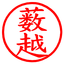 [朱肉の色]を選び、入力窓に“薮越”と入力して[生成]ボタンを押すと、印影が更新され、リンクから電子印鑑(デジタル印影)がダウンロードできます。 電子印鑑「薮越」の作り方文字表示が変なときや、文字バランスが悪いときは[字形切替]のチェックボックスでON/OFFを切り替え[生成]しなおしてください。 生成される画像は通常の印影「薮越.png」と、にじみを表現した少し太めの印影「薮越B.png」の背面透過PNG形式2種と、鮮明なPDF形式の印影「薮越.pdf」の計3種類です。 朱肉の微妙な色の違いを7色で表現しました。デフォルト(左端)は、JISが定めた朱肉の色のマンセル値(7.5R 5/14)をRGB値(217,66,54)に変換したものになっています。 「電子透かし」にチェックを入れて[生成]ボタンを押すと、タイムスタンプを透かしとして埋め込んだセキュアな電子印鑑が作れます。詳細は別ページの「電子透かしとタイムスタンプ」でご覧ください。 薮越さんの日付印が作れます。「日付スタンプメーカー」は、社内向けの書類に利用されることの多い日付印(データ印)が無料で作れるWebアプリケーションです。中段に日付が入り、上段と下段は、ともに8文字まで文字が入ります。 ![]() 古代文字で落款印が作れます。「落款スタンプメーカー」で作品を引き立たせる落款印が作れます。