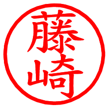 [朱肉の色]を選び、入力窓に“藤崎”と入力して[生成]ボタンを押すと、印影が更新され、リンクから電子印鑑(デジタル印影)がダウンロードできます。 電子印鑑「藤崎」の作り方文字表示が変なときや、文字バランスが悪いときは[字形切替]のチェックボックスでON/OFFを切り替え[生成]しなおしてください。 生成される画像は通常の印影「藤崎.png」と、にじみを表現した少し太めの印影「藤崎B.png」の背面透過PNG形式2種と、鮮明なPDF形式の印影「藤崎.pdf」の計3種類です。 朱肉の微妙な色の違いを7色で表現しました。デフォルト(左端)は、JISが定めた朱肉の色のマンセル値(7.5R 5/14)をRGB値(217,66,54)に変換したものになっています。 「電子透かし」にチェックを入れて[生成]ボタンを押すと、タイムスタンプを透かしとして埋め込んだセキュアな電子印鑑が作れます。詳細は別ページの「電子透かしとタイムスタンプ」でご覧ください。 藤崎さんの日付印が作れます。「日付スタンプメーカー」は、社内向けの書類に利用されることの多い日付印(データ印)が無料で作れるWebアプリケーションです。中段に日付が入り、上段と下段は、ともに8文字まで文字が入ります。 ![]() 古代文字で落款印が作れます。「落款スタンプメーカー」で作品を引き立たせる落款印が作れます。