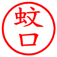 [朱肉の色]を選び、入力窓に“蚊口”と入力して[生成]ボタンを押すと、印影が更新され、リンクから電子印鑑(デジタル印影)がダウンロードできます。 電子印鑑「蚊口」の作り方文字表示が変なときや、文字バランスが悪いときは[字形切替]のチェックボックスでON/OFFを切り替え[生成]しなおしてください。 生成される画像は通常の印影「蚊口.png」と、にじみを表現した少し太めの印影「蚊口B.png」の背面透過PNG形式2種と、鮮明なPDF形式の印影「蚊口.pdf」の計3種類です。 朱肉の微妙な色の違いを7色で表現しました。デフォルト(左端)は、JISが定めた朱肉の色のマンセル値(7.5R 5/14)をRGB値(217,66,54)に変換したものになっています。 「電子透かし」にチェックを入れて[生成]ボタンを押すと、タイムスタンプを電子透かしとして埋め込んだセキュアな電子印鑑が作れます。詳細は別ページの「タイムスタンプと電子透かし」でご覧ください。 蚊口さんの日付印が作れます。「日付スタンプメーカー」は、社内向けの書類に利用されることの多い日付印(データ印)が無料で作れるWebアプリケーションです。中段に日付が入り、上段と下段は、ともに8文字まで文字が入ります。 ![]() 古代文字で落款印が作れます。「落款スタンプメーカー」で作品を引き立たせる落款印が作れます。