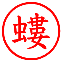 [朱肉の色]を選び、入力窓に“螻”と入力して[生成]ボタンを押すと、印影が更新され、リンクから電子印鑑(デジタル印影)がダウンロードできます。 電子印鑑「螻」の作り方文字表示が変なときや、文字バランスが悪いときは[字形切替]のチェックボックスでON/OFFを切り替え[生成]しなおしてください。 生成される画像は通常の印影「螻.png」と、にじみを表現した少し太めの印影「螻B.png」の背面透過PNG形式2種と、鮮明なPDF形式の印影「螻.pdf」の計3種類です。 朱肉の微妙な色の違いを7色で表現しました。デフォルト(左端)は、JISが定めた朱肉の色のマンセル値(7.5R 5/14)をRGB値(217,66,54)に変換したものになっています。 「電子透かし」にチェックを入れて[生成]ボタンを押すと、タイムスタンプを電子透かしとして埋め込んだセキュアな電子印鑑が作れます。詳細は別ページの「タイムスタンプと電子透かし」でご覧ください。 螻さんの日付印が作れます。「日付スタンプメーカー」は、社内向けの書類に利用されることの多い日付印(データ印)が無料で作れるWebアプリケーションです。中段に日付が入り、上段と下段は、ともに8文字まで文字が入ります。 ![]() 古代文字で落款印が作れます。「落款スタンプメーカー」で作品を引き立たせる落款印が作れます。