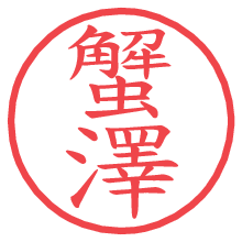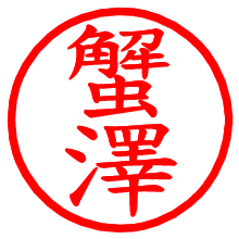 [朱肉の色]を選び、入力窓に“蟹澤”と入力して[生成]ボタンを押すと、印影が更新され、リンクから電子印鑑(デジタル印影)がダウンロードできます。 電子印鑑「蟹澤」の作り方文字表示が変なときや、文字バランスが悪いときは[字形切替]のチェックボックスでON/OFFを切り替え[生成]しなおしてください。 生成される画像は通常の印影「蟹澤.png」と、にじみを表現した少し太めの印影「蟹澤B.png」の背面透過PNG形式2種と、鮮明なPDF形式の印影「蟹澤.pdf」の計3種類です。 朱肉の微妙な色の違いを7色で表現しました。デフォルト(左端)は、JISが定めた朱肉の色のマンセル値(7.5R 5/14)をRGB値(217,66,54)に変換したものになっています。 「電子透かし」にチェックを入れて[生成]ボタンを押すと、タイムスタンプを電子透かしとして埋め込んだセキュアな電子印鑑が作れます。詳細は別ページの「タイムスタンプと電子透かし」でご覧ください。 蟹澤さんの日付印が作れます。「日付スタンプメーカー」は、社内向けの書類に利用されることの多い日付印(データ印)が無料で作れるWebアプリケーションです。中段に日付が入り、上段と下段は、ともに8文字まで文字が入ります。 ![]() 古代文字で落款印が作れます。「落款スタンプメーカー」で作品を引き立たせる落款印が作れます。