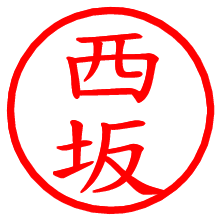 [朱肉の色]を選び、入力窓に“西坂”と入力して[生成]ボタンを押すと、印影が更新され、リンクから電子印鑑(デジタル印影)がダウンロードできます。 電子印鑑「西坂」の作り方文字表示が変なときや、文字バランスが悪いときは[字形切替]のチェックボックスでON/OFFを切り替え[生成]しなおしてください。 生成される画像は通常の印影「西坂.png」と、にじみを表現した少し太めの印影「西坂B.png」の背面透過PNG形式2種と、鮮明なPDF形式の印影「西坂.pdf」の計3種類です。 朱肉の微妙な色の違いを7色で表現しました。デフォルト(左端)は、JISが定めた朱肉の色のマンセル値(7.5R 5/14)をRGB値(217,66,54)に変換したものになっています。 「電子透かし」にチェックを入れて[生成]ボタンを押すと、タイムスタンプを透かしとして埋め込んだセキュアな電子印鑑が作れます。詳細は別ページの「電子透かしとタイムスタンプ」でご覧ください。 西坂さんの日付印が作れます。「日付スタンプメーカー」は、社内向けの書類に利用されることの多い日付印(データ印)が無料で作れるWebアプリケーションです。中段に日付が入り、上段と下段は、ともに8文字まで文字が入ります。 ![]() 古代文字で落款印が作れます。「落款スタンプメーカー」で作品を引き立たせる落款印が作れます。