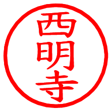 [朱肉の色]を選び、入力窓に“西明寺”と入力して[生成]ボタンを押すと、印影が更新され、リンクから電子印鑑(デジタル印影)がダウンロードできます。 電子印鑑「西明寺」の作り方文字表示が変なときや、文字バランスが悪いときは[字形切替]のチェックボックスでON/OFFを切り替え[生成]しなおしてください。 生成される画像は通常の印影「西明寺.png」と、にじみを表現した少し太めの印影「西明寺B.png」の背面透過PNG形式2種と、鮮明なPDF形式の印影「西明寺.pdf」の計3種類です。 朱肉の微妙な色の違いを7色で表現しました。デフォルト(左端)は、JISが定めた朱肉の色のマンセル値(7.5R 5/14)をRGB値(217,66,54)に変換したものになっています。 「電子透かし」にチェックを入れて[生成]ボタンを押すと、タイムスタンプを電子透かしとして埋め込んだセキュアな電子印鑑が作れます。詳細は別ページの「タイムスタンプと電子透かし」でご覧ください。 西明寺さんの日付印が作れます。「日付スタンプメーカー」は、社内向けの書類に利用されることの多い日付印(データ印)が無料で作れるWebアプリケーションです。中段に日付が入り、上段と下段は、ともに8文字まで文字が入ります。 ![]() 古代文字で落款印が作れます。「落款スタンプメーカー」で作品を引き立たせる落款印が作れます。