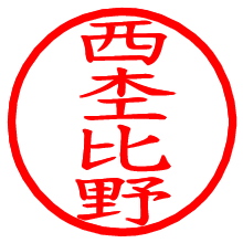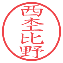 [朱肉の色]を選び、入力窓に“西杢比野”と入力して[生成]ボタンを押すと、印影が更新され、リンクから電子印鑑(デジタル印影)がダウンロードできます。 電子印鑑「西杢比野」の作り方文字表示が変なときや、文字バランスが悪いときは[字形切替]のチェックボックスでON/OFFを切り替え[生成]しなおしてください。 生成される画像は通常の印影「西杢比野.png」と、にじみを表現した少し太めの印影「西杢比野B.png」の背面透過PNG形式2種と、鮮明なPDF形式の印影「西杢比野.pdf」の計3種類です。 朱肉の微妙な色の違いを7色で表現しました。デフォルト(左端)は、JISが定めた朱肉の色のマンセル値(7.5R 5/14)をRGB値(217,66,54)に変換したものになっています。 「電子透かし」にチェックを入れて[生成]ボタンを押すと、タイムスタンプを電子透かしとして埋め込んだセキュアな電子印鑑が作れます。詳細は別ページの「タイムスタンプと電子透かし」でご覧ください。 西杢比野さんの日付印が作れます。「日付スタンプメーカー」は、社内向けの書類に利用されることの多い日付印(データ印)が無料で作れるWebアプリケーションです。中段に日付が入り、上段と下段は、ともに8文字まで文字が入ります。 ![]() 古代文字で落款印が作れます。「落款スタンプメーカー」で作品を引き立たせる落款印が作れます。