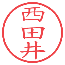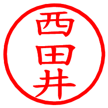 [朱肉の色]を選び、入力窓に“西田井”と入力して[生成]ボタンを押すと、印影が更新され、リンクから電子印鑑(デジタル印影)がダウンロードできます。 電子印鑑「西田井」の作り方文字表示が変なときや、文字バランスが悪いときは[字形切替]のチェックボックスでON/OFFを切り替え[生成]しなおしてください。 生成される画像は通常の印影「西田井.png」と、にじみを表現した少し太めの印影「西田井B.png」の背面透過PNG形式2種と、鮮明なPDF形式の印影「西田井.pdf」の計3種類です。 朱肉の微妙な色の違いを7色で表現しました。デフォルト(左端)は、JISが定めた朱肉の色のマンセル値(7.5R 5/14)をRGB値(217,66,54)に変換したものになっています。 「電子透かし」にチェックを入れて[生成]ボタンを押すと、タイムスタンプを電子透かしとして埋め込んだセキュアな電子印鑑が作れます。詳細は別ページの「タイムスタンプと電子透かし」でご覧ください。 西田井さんの日付印が作れます。「日付スタンプメーカー」は、社内向けの書類に利用されることの多い日付印(データ印)が無料で作れるWebアプリケーションです。中段に日付が入り、上段と下段は、ともに8文字まで文字が入ります。 ![]() 古代文字で落款印が作れます。「落款スタンプメーカー」で作品を引き立たせる落款印が作れます。