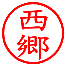 [朱肉の色]を選び、入力窓に“西郷”と入力して[生成]ボタンを押すと、印影が更新され、リンクから電子印鑑(デジタル印影)がダウンロードできます。 電子印鑑「西郷」の作り方文字表示が変なときや、文字バランスが悪いときは[字形切替]のチェックボックスでON/OFFを切り替え[生成]しなおしてください。 生成される画像は通常の印影「西郷.png」と、にじみを表現した少し太めの印影「西郷B.png」の背面透過PNG形式2種と、鮮明なPDF形式の印影「西郷.pdf」の計3種類です。 朱肉の微妙な色の違いを7色で表現しました。デフォルト(左端)は、JISが定めた朱肉の色のマンセル値(7.5R 5/14)をRGB値(217,66,54)に変換したものになっています。 「電子透かし」にチェックを入れて[生成]ボタンを押すと、タイムスタンプを透かしとして埋め込んだセキュアな電子印鑑が作れます。詳細は別ページの「電子透かしとタイムスタンプ」でご覧ください。 西郷さんの日付印が作れます。「日付スタンプメーカー」は、社内向けの書類に利用されることの多い日付印(データ印)が無料で作れるWebアプリケーションです。中段に日付が入り、上段と下段は、ともに8文字まで文字が入ります。 ![]() 古代文字で落款印が作れます。「落款スタンプメーカー」で作品を引き立たせる落款印が作れます。