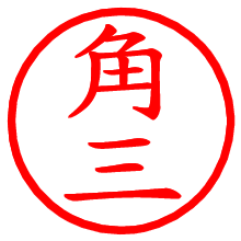 [朱肉の色]を選び、入力窓に“角三”と入力して[生成]ボタンを押すと、印影が更新され、リンクから電子印鑑(デジタル印影)がダウンロードできます。 電子印鑑「角三」の作り方文字表示が変なときや、文字バランスが悪いときは[字形切替]のチェックボックスでON/OFFを切り替え[生成]しなおしてください。 生成される画像は通常の印影「角三.png」と、にじみを表現した少し太めの印影「角三B.png」の背面透過PNG形式2種と、鮮明なPDF形式の印影「角三.pdf」の計3種類です。 朱肉の微妙な色の違いを7色で表現しました。デフォルト(左端)は、JISが定めた朱肉の色のマンセル値(7.5R 5/14)をRGB値(217,66,54)に変換したものになっています。 「電子透かし」にチェックを入れて[生成]ボタンを押すと、タイムスタンプを電子透かしとして埋め込んだセキュアな電子印鑑が作れます。詳細は別ページの「タイムスタンプと電子透かし」でご覧ください。 角三さんの日付印が作れます。「日付スタンプメーカー」は、社内向けの書類に利用されることの多い日付印(データ印)が無料で作れるWebアプリケーションです。中段に日付が入り、上段と下段は、ともに8文字まで文字が入ります。 ![]() 古代文字で落款印が作れます。「落款スタンプメーカー」で作品を引き立たせる落款印が作れます。