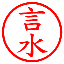 [朱肉の色]を選び、入力窓に“言水”と入力して[生成]ボタンを押すと、印影が更新され、リンクから電子印鑑(デジタル印影)がダウンロードできます。 電子印鑑「言水」の作り方文字表示が変なときや、文字バランスが悪いときは[字形切替]のチェックボックスでON/OFFを切り替え[生成]しなおしてください。 生成される画像は通常の印影「言水.png」と、にじみを表現した少し太めの印影「言水B.png」の背面透過PNG形式2種と、鮮明なPDF形式の印影「言水.pdf」の計3種類です。 朱肉の微妙な色の違いを7色で表現しました。デフォルト(左端)は、JISが定めた朱肉の色のマンセル値(7.5R 5/14)をRGB値(217,66,54)に変換したものになっています。 「電子透かし」にチェックを入れて[生成]ボタンを押すと、タイムスタンプを電子透かしとして埋め込んだセキュアな電子印鑑が作れます。詳細は別ページの「タイムスタンプと電子透かし」でご覧ください。 言水さんの日付印が作れます。「日付スタンプメーカー」は、社内向けの書類に利用されることの多い日付印(データ印)が無料で作れるWebアプリケーションです。中段に日付が入り、上段と下段は、ともに8文字まで文字が入ります。 ![]() 古代文字で落款印が作れます。「落款スタンプメーカー」で作品を引き立たせる落款印が作れます。