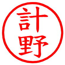 [朱肉の色]を選び、入力窓に“計野”と入力して[生成]ボタンを押すと、印影が更新され、リンクから電子印鑑(デジタル印影)がダウンロードできます。 電子印鑑「計野」の作り方文字表示が変なときや、文字バランスが悪いときは[字形切替]のチェックボックスでON/OFFを切り替え[生成]しなおしてください。 生成される画像は通常の印影「計野.png」と、にじみを表現した少し太めの印影「計野B.png」の背面透過PNG形式2種と、鮮明なPDF形式の印影「計野.pdf」の計3種類です。 朱肉の微妙な色の違いを7色で表現しました。デフォルト(左端)は、JISが定めた朱肉の色のマンセル値(7.5R 5/14)をRGB値(217,66,54)に変換したものになっています。 「電子透かし」にチェックを入れて[生成]ボタンを押すと、タイムスタンプを電子透かしとして埋め込んだセキュアな電子印鑑が作れます。詳細は別ページの「タイムスタンプと電子透かし」でご覧ください。 計野さんの日付印が作れます。「日付スタンプメーカー」は、社内向けの書類に利用されることの多い日付印(データ印)が無料で作れるWebアプリケーションです。中段に日付が入り、上段と下段は、ともに8文字まで文字が入ります。 ![]() 古代文字で落款印が作れます。「落款スタンプメーカー」で作品を引き立たせる落款印が作れます。