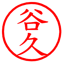 [朱肉の色]を選び、入力窓に“谷久”と入力して[生成]ボタンを押すと、印影が更新され、リンクから電子印鑑(デジタル印影)がダウンロードできます。 電子印鑑「谷久」の作り方文字表示が変なときや、文字バランスが悪いときは[字形切替]のチェックボックスでON/OFFを切り替え[生成]しなおしてください。 生成される画像は通常の印影「谷久.png」と、にじみを表現した少し太めの印影「谷久B.png」の背面透過PNG形式2種と、鮮明なPDF形式の印影「谷久.pdf」の計3種類です。 朱肉の微妙な色の違いを7色で表現しました。デフォルト(左端)は、JISが定めた朱肉の色のマンセル値(7.5R 5/14)をRGB値(217,66,54)に変換したものになっています。 「電子透かし」にチェックを入れて[生成]ボタンを押すと、タイムスタンプを電子透かしとして埋め込んだセキュアな電子印鑑が作れます。詳細は別ページの「タイムスタンプと電子透かし」でご覧ください。 谷久さんの日付印が作れます。「日付スタンプメーカー」は、社内向けの書類に利用されることの多い日付印(データ印)が無料で作れるWebアプリケーションです。中段に日付が入り、上段と下段は、ともに8文字まで文字が入ります。 ![]() 古代文字で落款印が作れます。「落款スタンプメーカー」で作品を引き立たせる落款印が作れます。