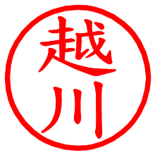 [朱肉の色]を選び、入力窓に“越川”と入力して[生成]ボタンを押すと、印影が更新され、リンクから電子印鑑(デジタル印影)がダウンロードできます。 電子印鑑「越川」の作り方文字表示が変なときや、文字バランスが悪いときは[字形切替]のチェックボックスでON/OFFを切り替え[生成]しなおしてください。 生成される画像は通常の印影「越川.png」と、にじみを表現した少し太めの印影「越川B.png」の背面透過PNG形式2種と、鮮明なPDF形式の印影「越川.pdf」の計3種類です。 朱肉の微妙な色の違いを7色で表現しました。デフォルト(左端)は、JISが定めた朱肉の色のマンセル値(7.5R 5/14)をRGB値(217,66,54)に変換したものになっています。 「電子透かし」にチェックを入れて[生成]ボタンを押すと、タイムスタンプを透かしとして埋め込んだセキュアな電子印鑑が作れます。詳細は別ページの「電子透かしとタイムスタンプ」でご覧ください。 越川さんの日付印が作れます。「日付スタンプメーカー」は、社内向けの書類に利用されることの多い日付印(データ印)が無料で作れるWebアプリケーションです。中段に日付が入り、上段と下段は、ともに8文字まで文字が入ります。 ![]() 古代文字で落款印が作れます。「落款スタンプメーカー」で作品を引き立たせる落款印が作れます。