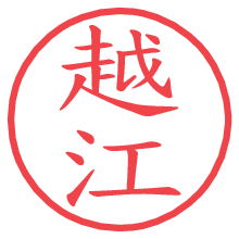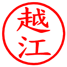 [朱肉の色]を選び、入力窓に“越江”と入力して[生成]ボタンを押すと、印影が更新され、リンクから電子印鑑(デジタル印影)がダウンロードできます。 電子印鑑「越江」の作り方文字表示が変なときや、文字バランスが悪いときは[字形切替]のチェックボックスでON/OFFを切り替え[生成]しなおしてください。 生成される画像は通常の印影「越江.png」と、にじみを表現した少し太めの印影「越江B.png」の背面透過PNG形式2種と、鮮明なPDF形式の印影「越江.pdf」の計3種類です。 朱肉の微妙な色の違いを7色で表現しました。デフォルト(左端)は、JISが定めた朱肉の色のマンセル値(7.5R 5/14)をRGB値(217,66,54)に変換したものになっています。 「電子透かし」にチェックを入れて[生成]ボタンを押すと、タイムスタンプを電子透かしとして埋め込んだセキュアな電子印鑑が作れます。詳細は別ページの「タイムスタンプと電子透かし」でご覧ください。 越江さんの日付印が作れます。「日付スタンプメーカー」は、社内向けの書類に利用されることの多い日付印(データ印)が無料で作れるWebアプリケーションです。中段に日付が入り、上段と下段は、ともに8文字まで文字が入ります。 ![]() 古代文字で落款印が作れます。「落款スタンプメーカー」で作品を引き立たせる落款印が作れます。