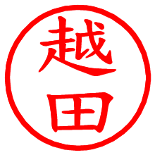 [朱肉の色]を選び、入力窓に“越田”と入力して[生成]ボタンを押すと、印影が更新され、リンクから電子印鑑(デジタル印影)がダウンロードできます。 電子印鑑「越田」の作り方文字表示が変なときや、文字バランスが悪いときは[字形切替]のチェックボックスでON/OFFを切り替え[生成]しなおしてください。 生成される画像は通常の印影「越田.png」と、にじみを表現した少し太めの印影「越田B.png」の背面透過PNG形式2種と、鮮明なPDF形式の印影「越田.pdf」の計3種類です。 朱肉の微妙な色の違いを7色で表現しました。デフォルト(左端)は、JISが定めた朱肉の色のマンセル値(7.5R 5/14)をRGB値(217,66,54)に変換したものになっています。 「電子透かし」にチェックを入れて[生成]ボタンを押すと、タイムスタンプを透かしとして埋め込んだセキュアな電子印鑑が作れます。詳細は別ページの「電子透かしとタイムスタンプ」でご覧ください。 ![]() 中段に日付が入り、上段と下段は、ともに8文字まで文字が入ります。 ![]() ![]() ![]() 「落款スタンプメーカー」で作成した落款印の全体的な配置バランスの確認にご利用いただけます。デザインのワンポイントやラインスタンプ等にもお使いください。 ![]() 絵文字が使えてLINEスタンプや年賀状にも使える消しゴムはんこ風の電子印鑑が作れます。 ![]() マイスタンプメーカーとは法的な電子印鑑にはあたりませんので三文判的な位置付けでご利用ください。 |