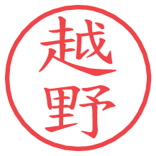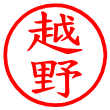 [朱肉の色]を選び、入力窓に“越野”と入力して[生成]ボタンを押すと、印影が更新され、リンクから電子印鑑(デジタル印影)がダウンロードできます。 電子印鑑「越野」の作り方文字表示が変なときや、文字バランスが悪いときは[字形切替]のチェックボックスでON/OFFを切り替え[生成]しなおしてください。 生成される画像は通常の印影「越野.png」と、にじみを表現した少し太めの印影「越野B.png」の背面透過PNG形式2種と、鮮明なPDF形式の印影「越野.pdf」の計3種類です。 朱肉の微妙な色の違いを7色で表現しました。デフォルト(左端)は、JISが定めた朱肉の色のマンセル値(7.5R 5/14)をRGB値(217,66,54)に変換したものになっています。 「電子透かし」にチェックを入れて[生成]ボタンを押すと、タイムスタンプを透かしとして埋め込んだセキュアな電子印鑑が作れます。詳細は別ページの「電子透かしとタイムスタンプ」でご覧ください。 越野さんの日付印が作れます。「日付スタンプメーカー」は、社内向けの書類に利用されることの多い日付印(データ印)が無料で作れるWebアプリケーションです。中段に日付が入り、上段と下段は、ともに8文字まで文字が入ります。 ![]() 古代文字で落款印が作れます。「落款スタンプメーカー」で作品を引き立たせる落款印が作れます。