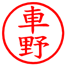 [朱肉の色]を選び、入力窓に“車野”と入力して[生成]ボタンを押すと、印影が更新され、リンクから電子印鑑(デジタル印影)がダウンロードできます。 電子印鑑「車野」の作り方文字表示が変なときや、文字バランスが悪いときは[字形切替]のチェックボックスでON/OFFを切り替え[生成]しなおしてください。 生成される画像は通常の印影「車野.png」と、にじみを表現した少し太めの印影「車野B.png」の背面透過PNG形式2種と、鮮明なPDF形式の印影「車野.pdf」の計3種類です。 朱肉の微妙な色の違いを7色で表現しました。デフォルト(左端)は、JISが定めた朱肉の色のマンセル値(7.5R 5/14)をRGB値(217,66,54)に変換したものになっています。 「電子透かし」にチェックを入れて[生成]ボタンを押すと、タイムスタンプを電子透かしとして埋め込んだセキュアな電子印鑑が作れます。詳細は別ページの「タイムスタンプと電子透かし」でご覧ください。 車野さんの日付印が作れます。「日付スタンプメーカー」は、社内向けの書類に利用されることの多い日付印(データ印)が無料で作れるWebアプリケーションです。中段に日付が入り、上段と下段は、ともに8文字まで文字が入ります。 ![]() 古代文字で落款印が作れます。「落款スタンプメーカー」で作品を引き立たせる落款印が作れます。